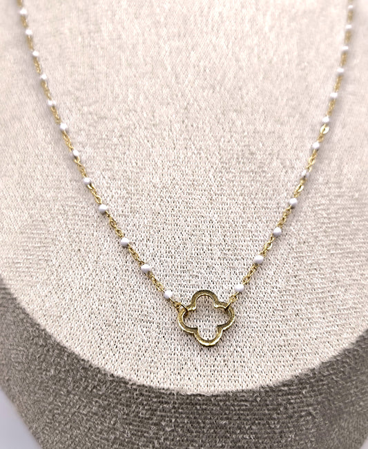 COLLIER PERLA TREFLE FUSHIA GOLD