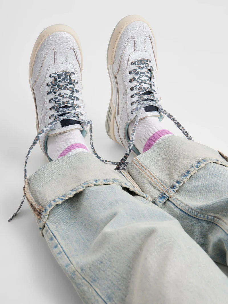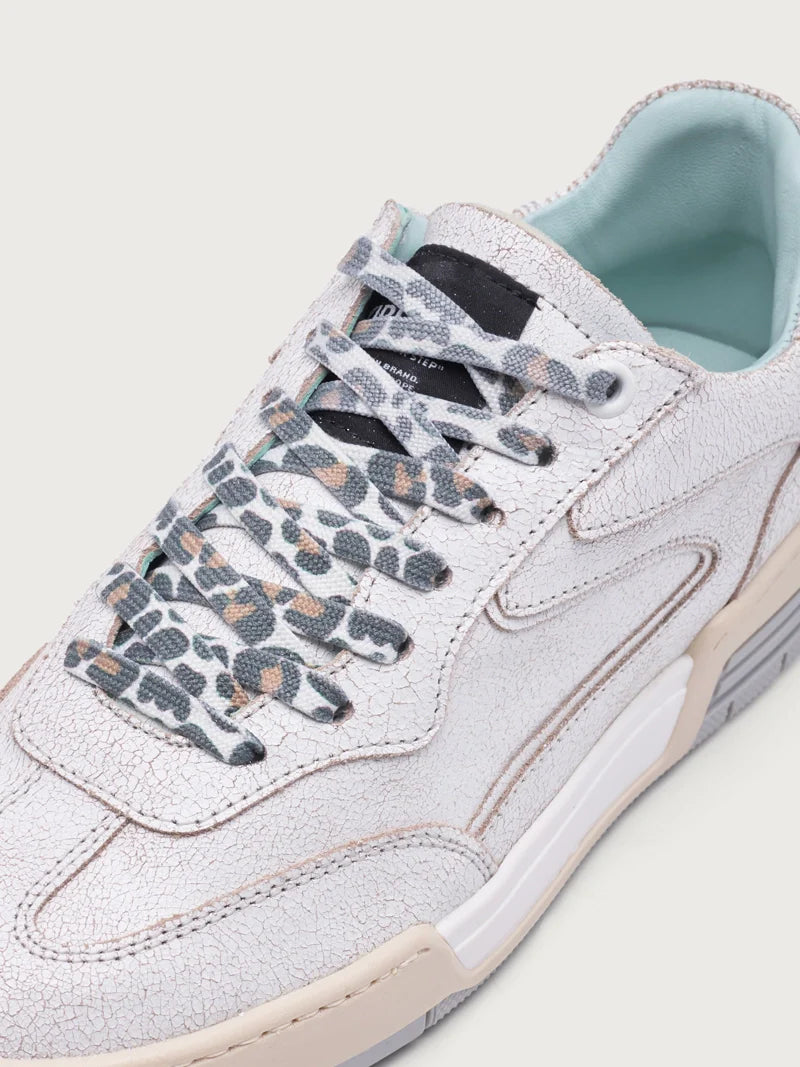 - Closure: Lace-up with leopard-print laces and logo detail on the tongue