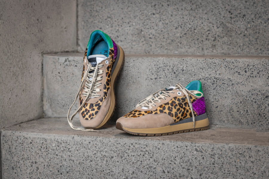 – Features: Runner sole, leopard pony hair, suede, leather.